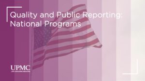 This module provides a basic introduction to the core elements of quality and the quality structure that exists within UPMC. Topics discussed in this module are the Wolff Center at UPMC divisions and services, Quality Analytics, Clinical Complications, Quality Data Abstraction, and Quality Improvement (QI) and Research.